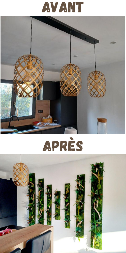 Sept panneaux, des hauteurs variées, viennent habiller ce mur de 3,50 m comme une respiration naturelle.
